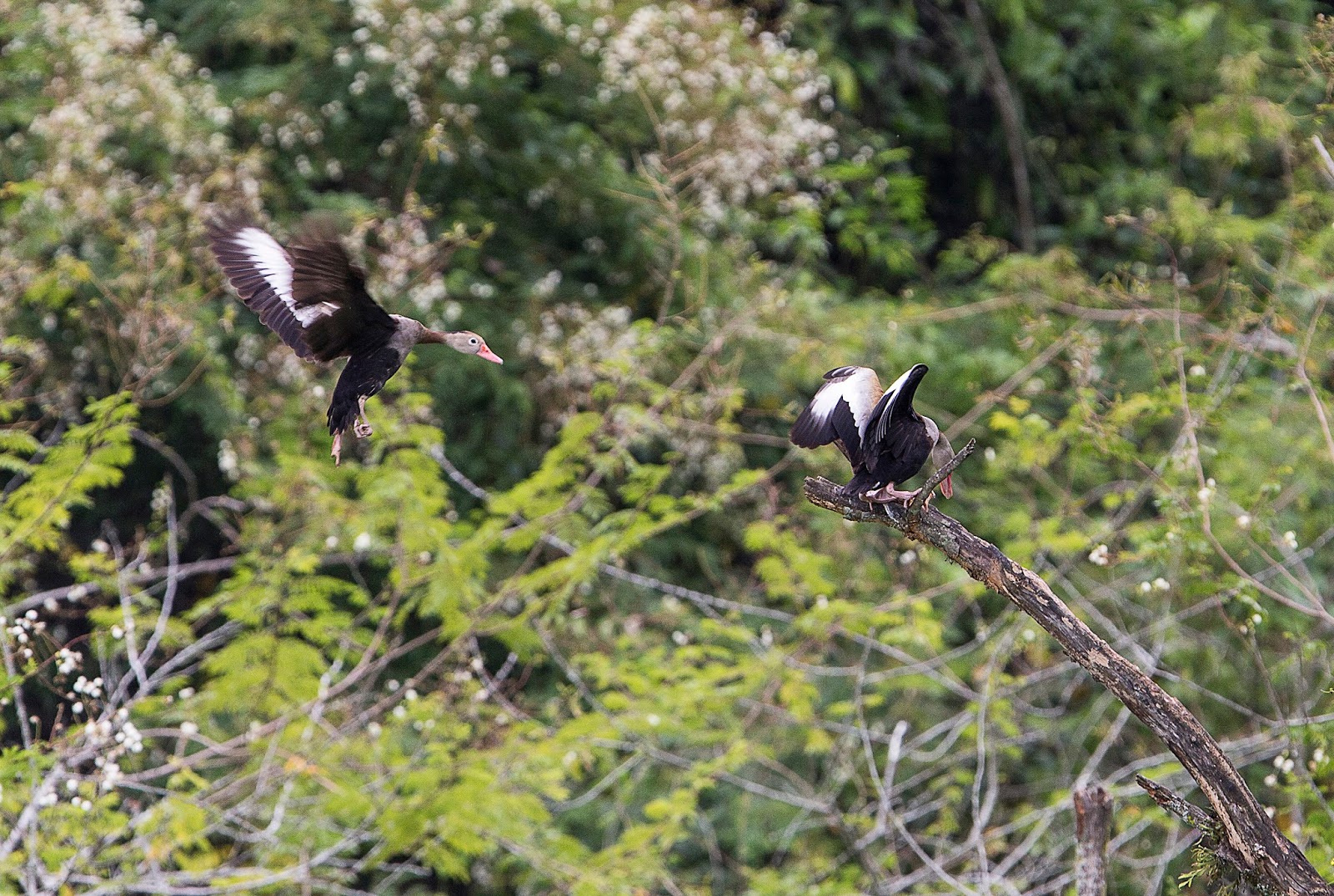 Achei estranho não termos visto nenhum anatídeo, então nos "finalmentes" eis que pinta um casal de asas-brancas dando um breve show:
